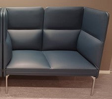 Blå skinn alkove 132 x 66 x 120, sh 46 cm. Børstet stål ben