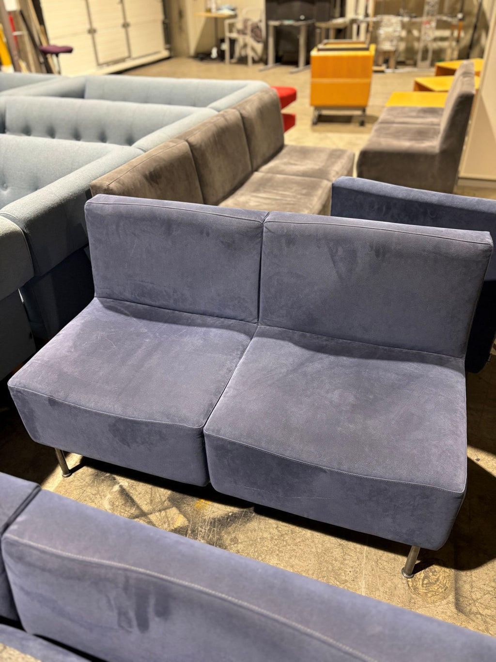 Her har vi mange moduler - både 2 setere og 3 setere og vi har bord som kan settes mellom de forskjellige modulene. Dette er grunne sofaer, 60cm dybde - så ypperlig i trange korridorer og som ventesone møbler. Alcanta stoffet er holdbart og brukervennlig