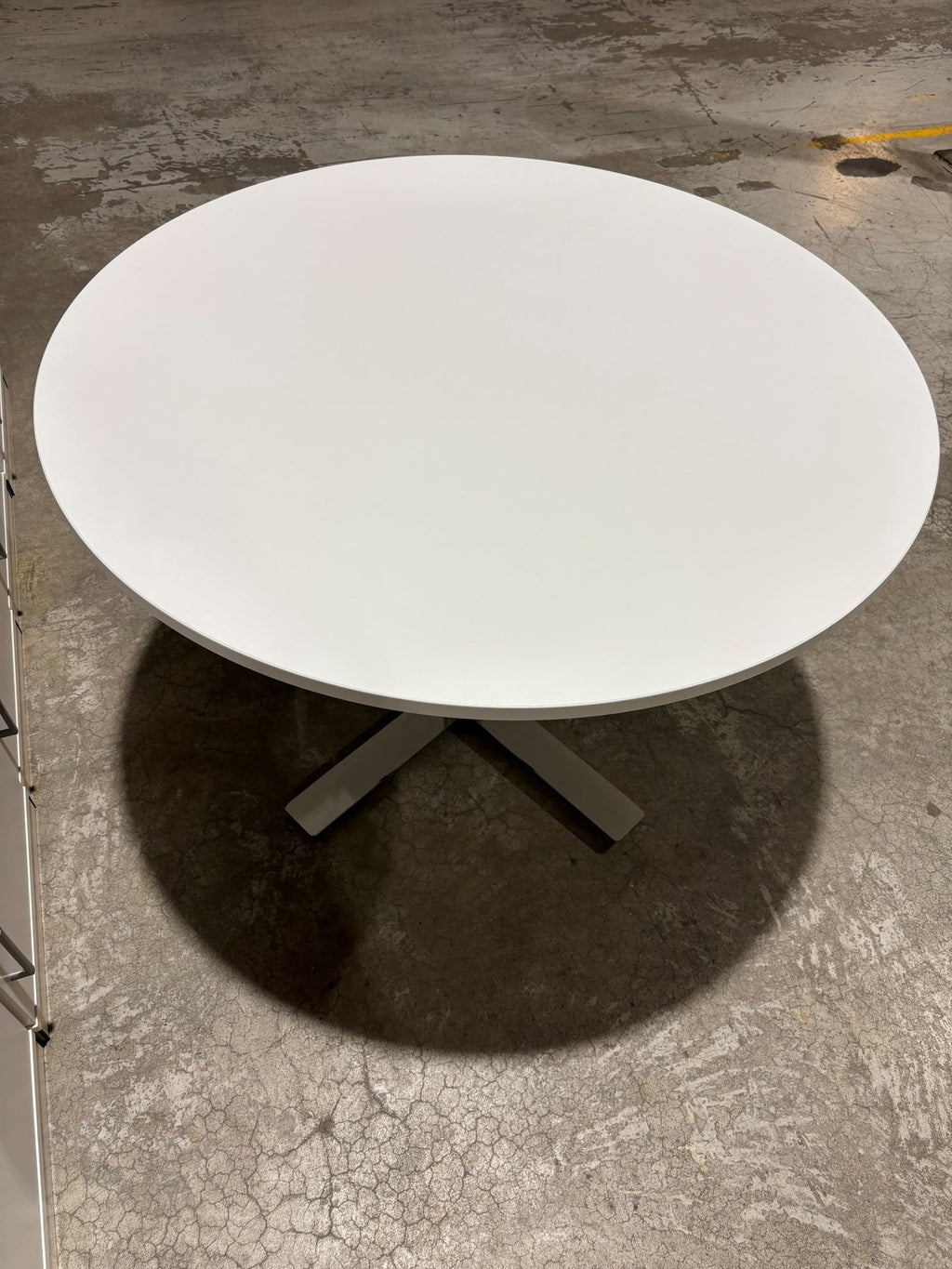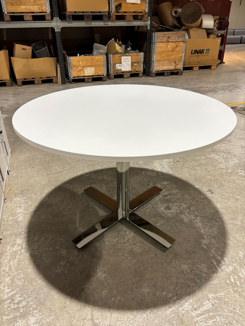Møtebord hvitt Ø110 H75 Kinnarps krom søyke