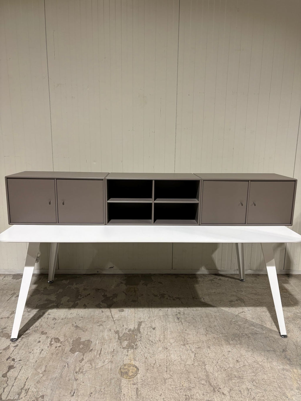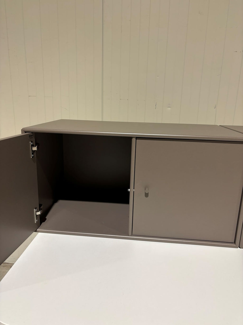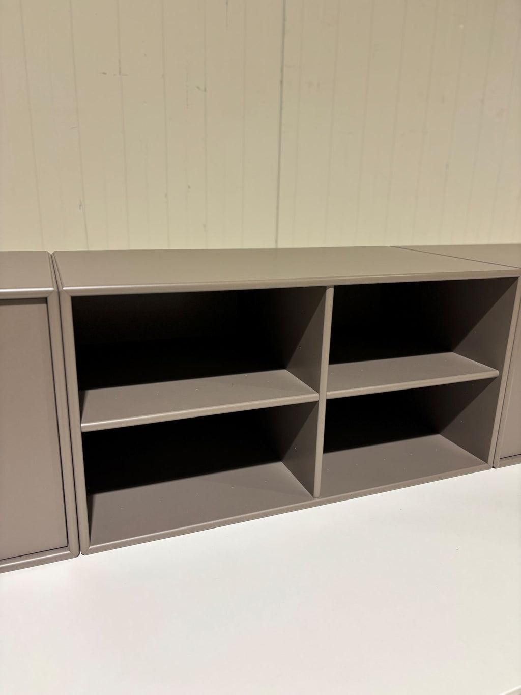 Montana skap, 3 deler. Hver modul måler 70 x 38 x 36, totalt 210 bredde. 2 moduler med slagdører og en modul med hyller. Fargekode 141 Truffle